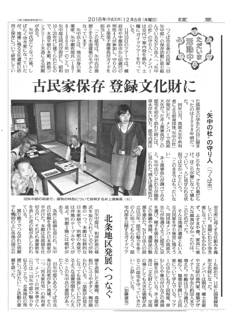 12月6日 読売新聞「ただいま活動中」に紹介されました