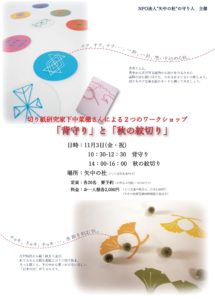 切り紙研究家下中菜穂さんによる2つのワークショップ「背守り」と「秋の紋切り」開催のお知らせ