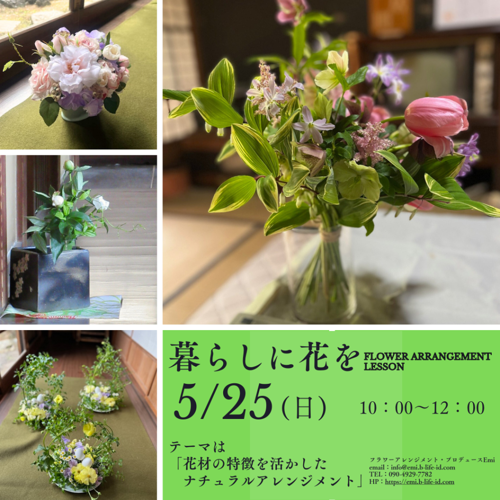 【5月25日 暮らしに花を フラワーアレンジメントレッスン】
