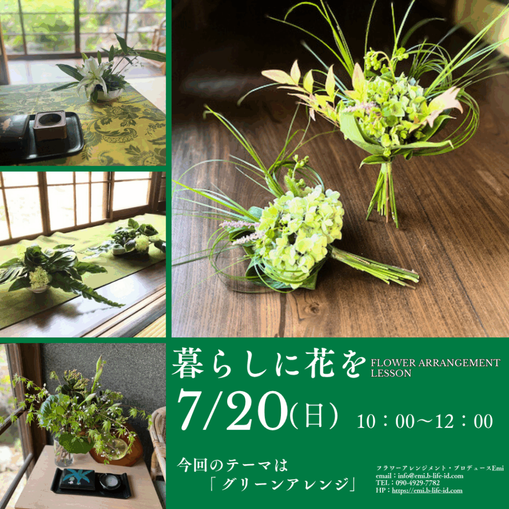 【7月20日 暮らしに花を フラワーアレンジメントレッスン】