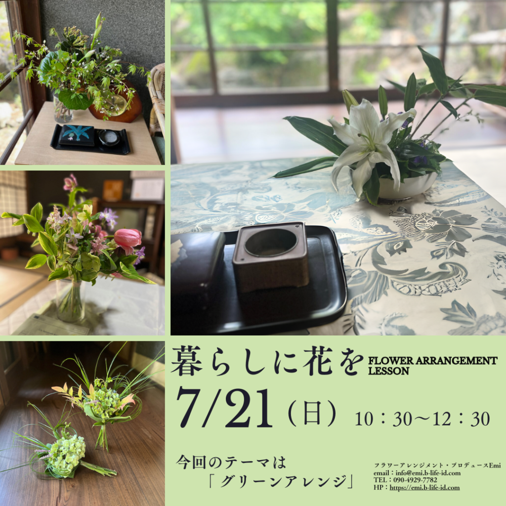 【7月21日 暮らしに花を フラワーアレンジメントレッスン】