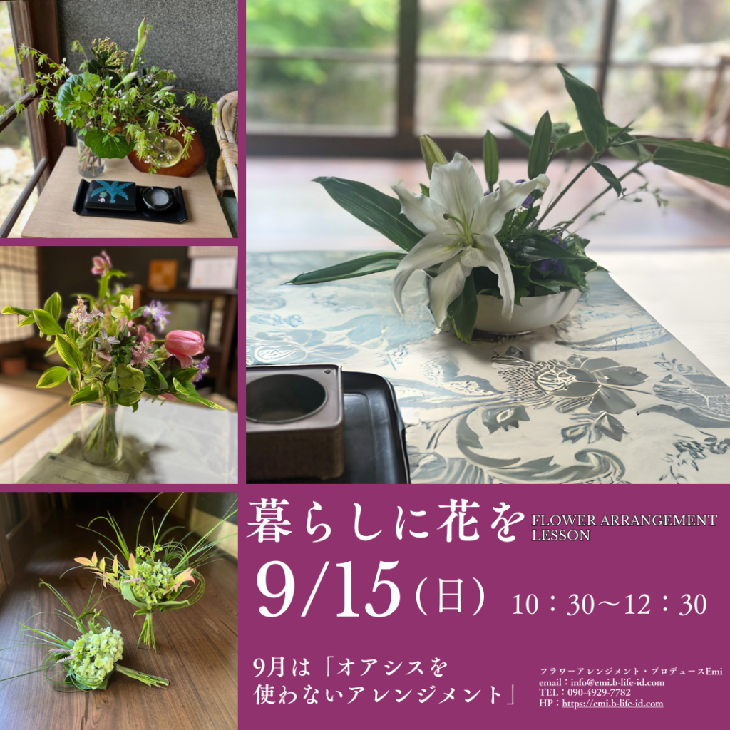 【9 月15日 暮らしに花を フラワーアレンジメントレッスン】