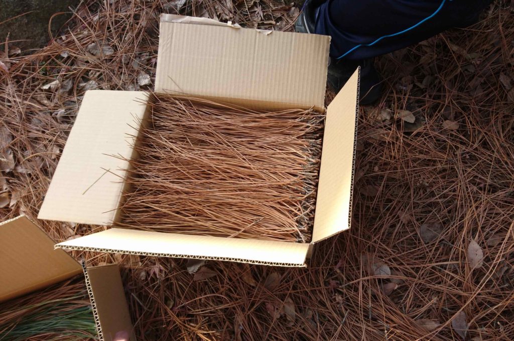【つくばね学:敷松葉を敷き始める】