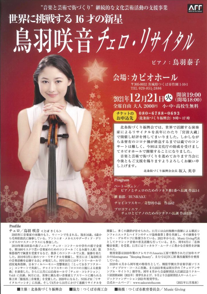 【12月21日「鳥羽咲音チェロ・リサイタル」開催!】