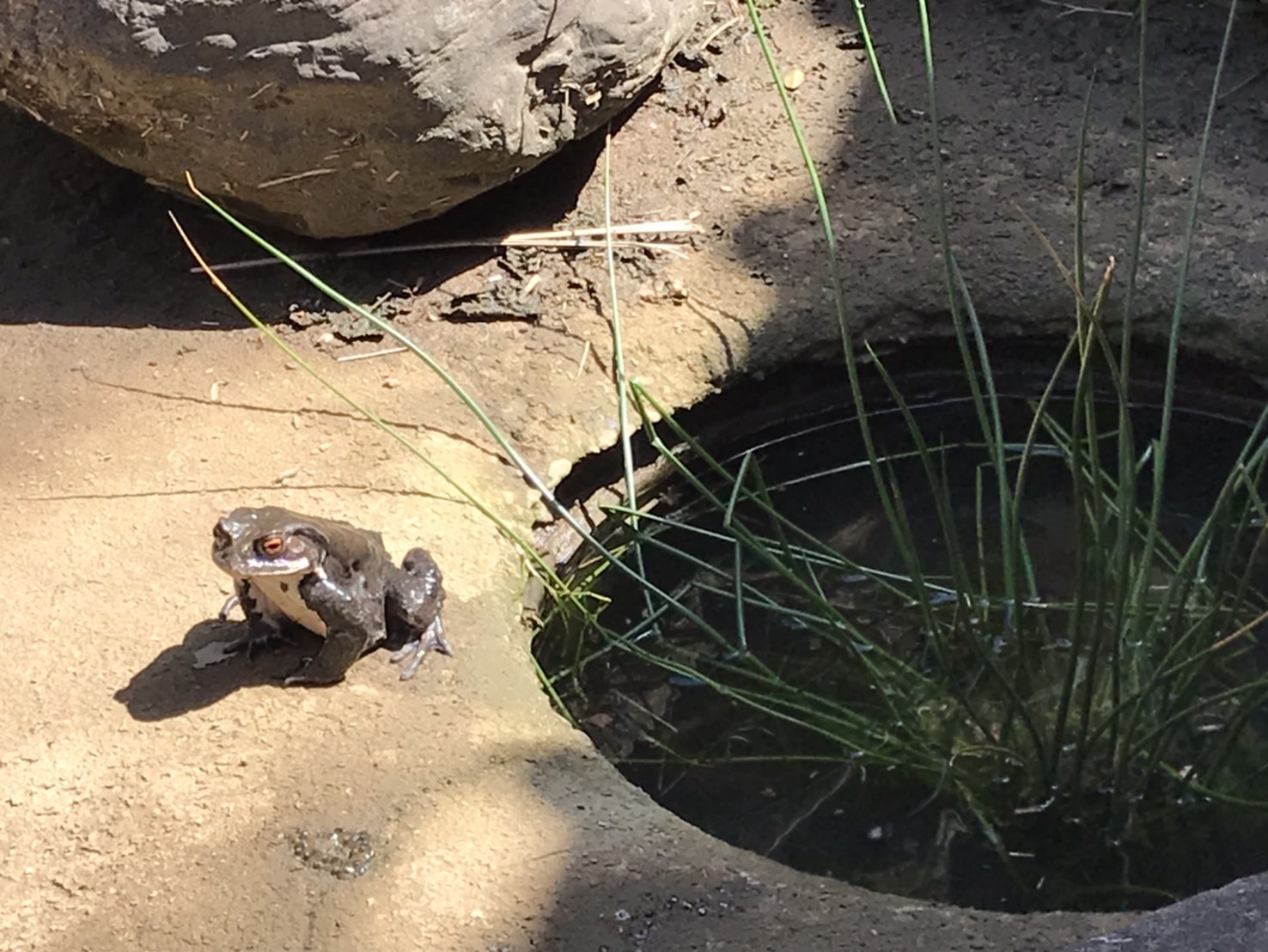 2024.04.01 守り人日記 〜3月30日〜 年度最後の公開日は春の陽気でした。 お庭の水たまりにガマガエルが集まってお祭りみたいに賑やかでした。 日向ぼっこするカエルさんは良い表情をしています。春ですね 守り人MM(写真協力:矢中の杜の庭倶楽部Kさん)
