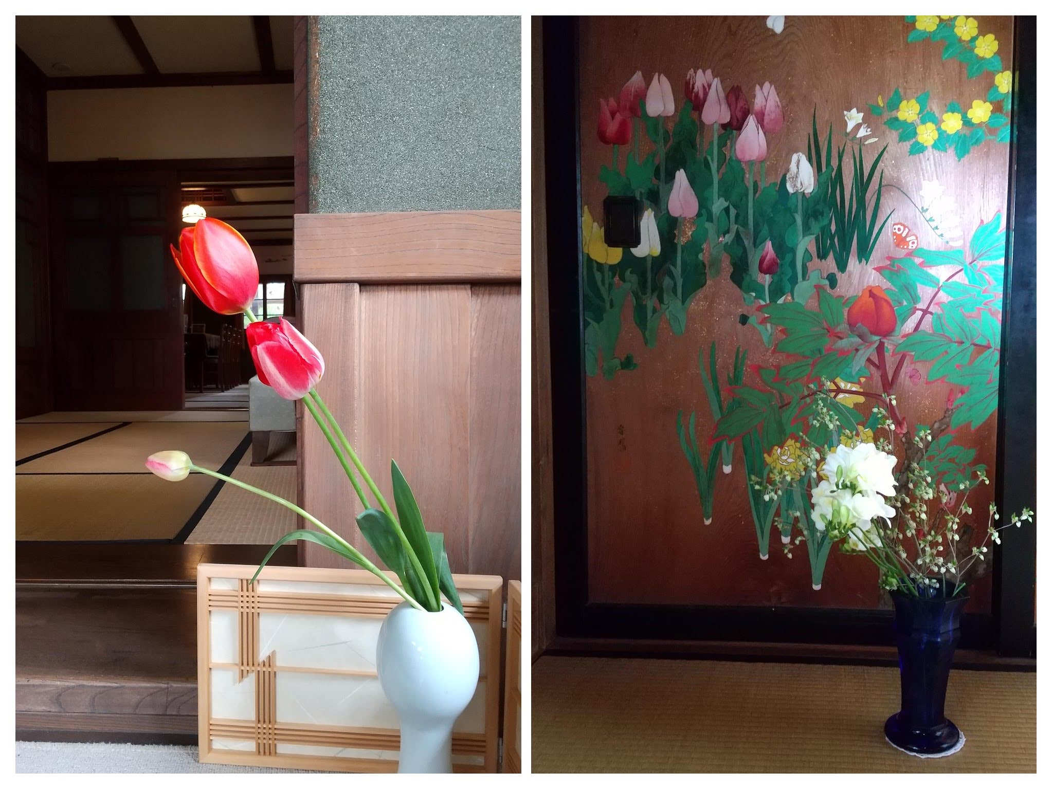 2024.04.15 守り人日記 〜4月13日〜 暖かい1日。多くの方に来場いただきありがとうございます。 旧北条中学校の同窓生の方達にも見学いただいて、いろいろお話を伺え、これまで知らなかったことがわかったり、当時の思い出を伺えたりと、お迎えした私たちも楽しめました。 本館の杉戸絵には春の花としてチューリップとフリージアも描かれています。 花壇で育てたチューリップとフリージアも飾って邸内も春爛漫です。 守り人N