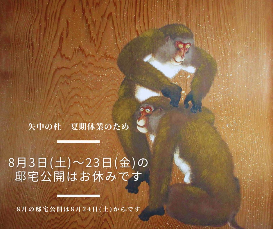邸宅公開は8月3日(土)から8月23日(金)まで夏期のお休みとさせていただきます。