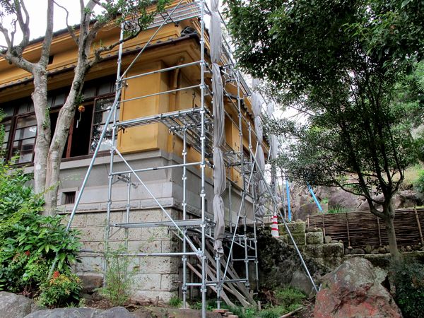 そのため母屋の周辺には足場が組まれ、しばらくは外観を損ねておりますが、どうぞご理解をお願いいたします。