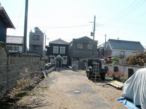 大谷石の塀が途切れた所から通りまでを竹垣にし、入り口のインパクトを上げようという計画です。