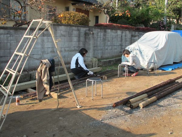 ところが塀の外枠作りと、割り竹の作業はほとんど終ってしまいました。