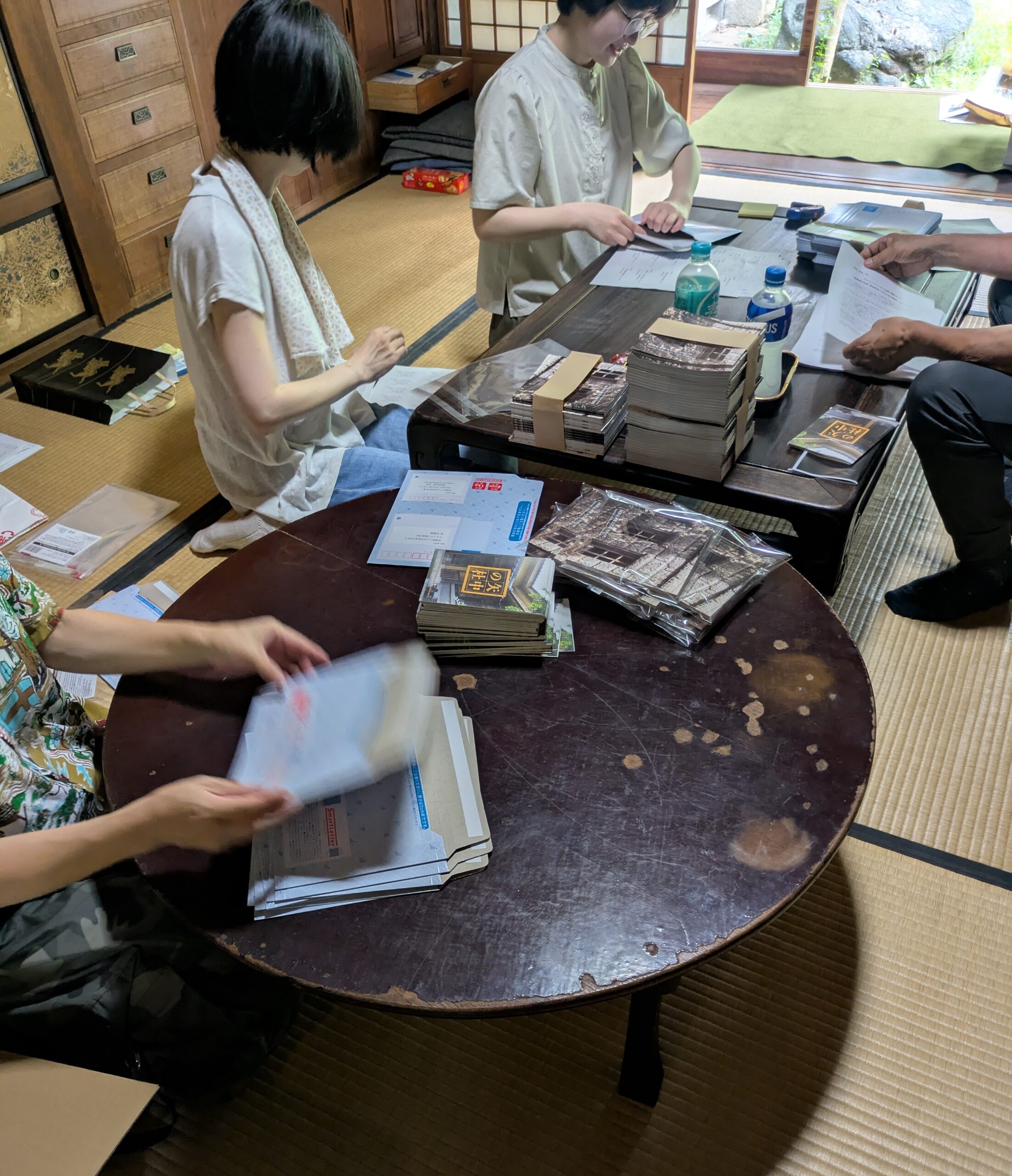 この日の作業は「矢中の杜写真集」と「みんなの登校日Tシャツ」の梱包作業。