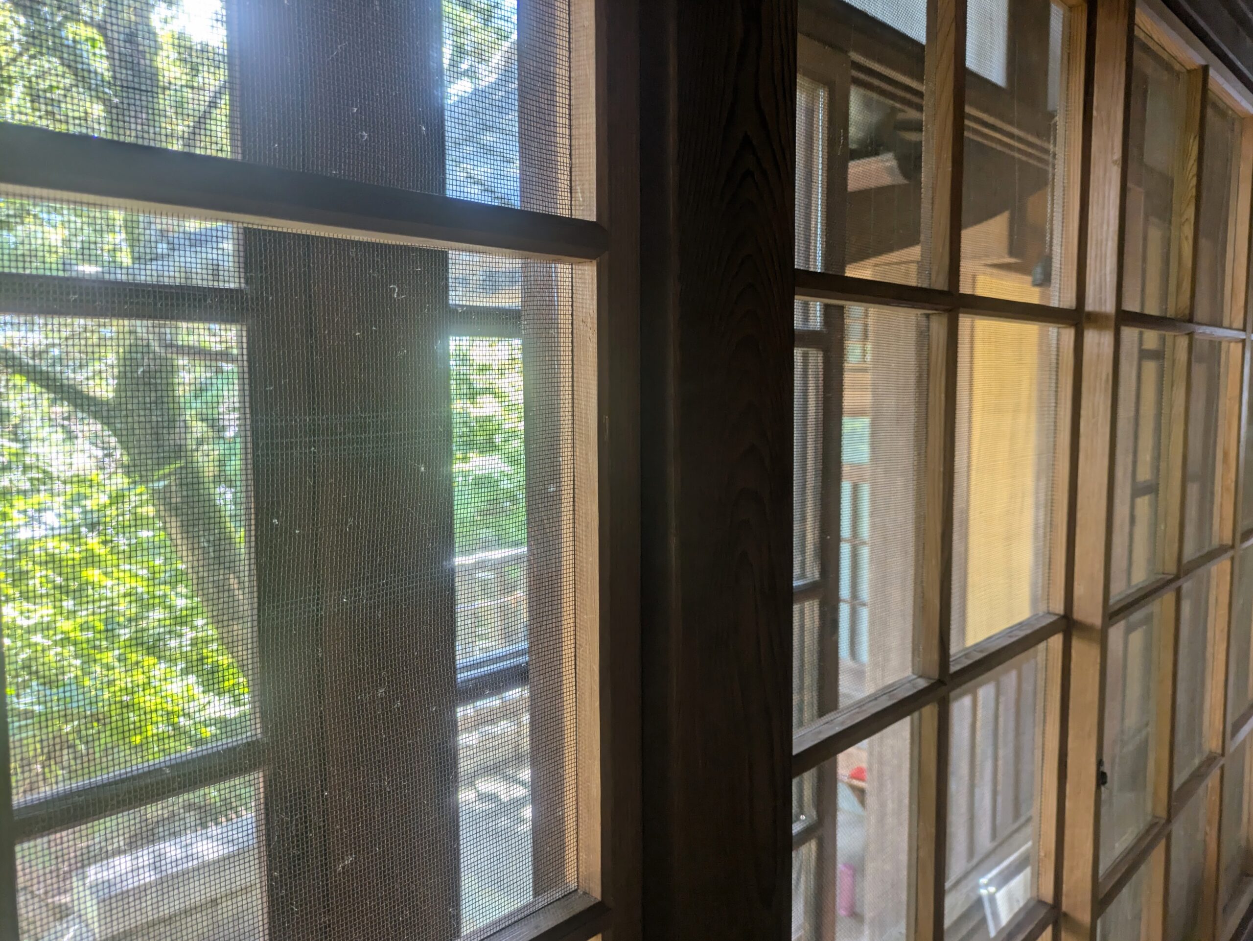 金属製の昔ながらの木製網戸ですが、掃除がうまくいかず布の切れ端がついてしまってどうもよろしくなかった。