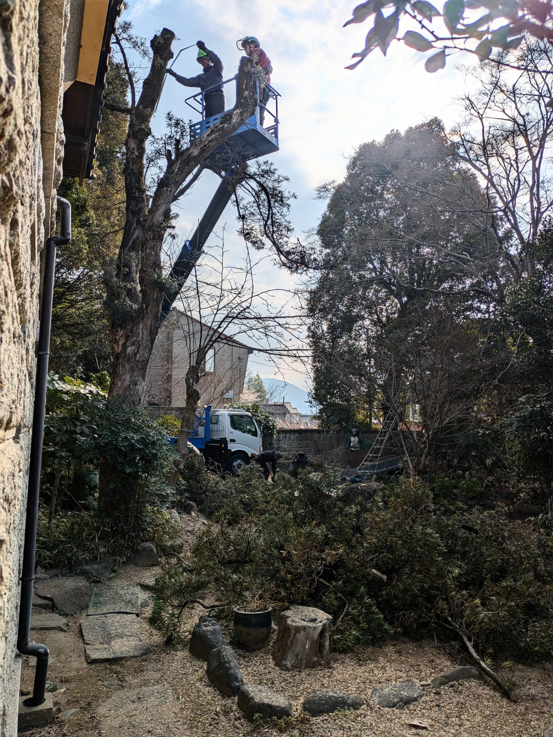工事を行なってくれたのは、池田樹木医事務所の皆さん。丁寧に対応いただいてありがとうございます。