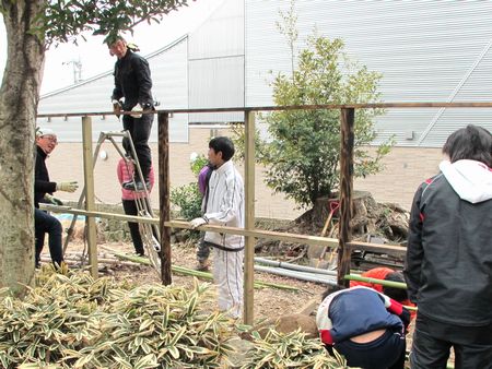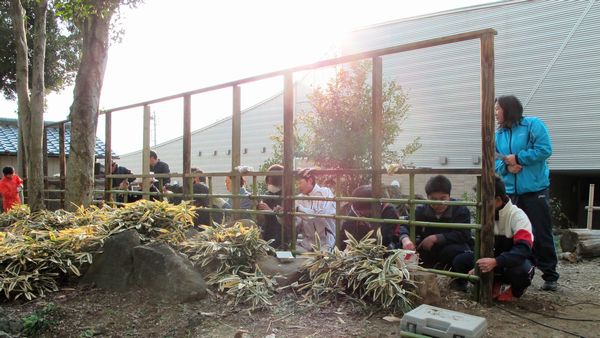 最後に縦に竹を縛り付け、四つ目垣風に。