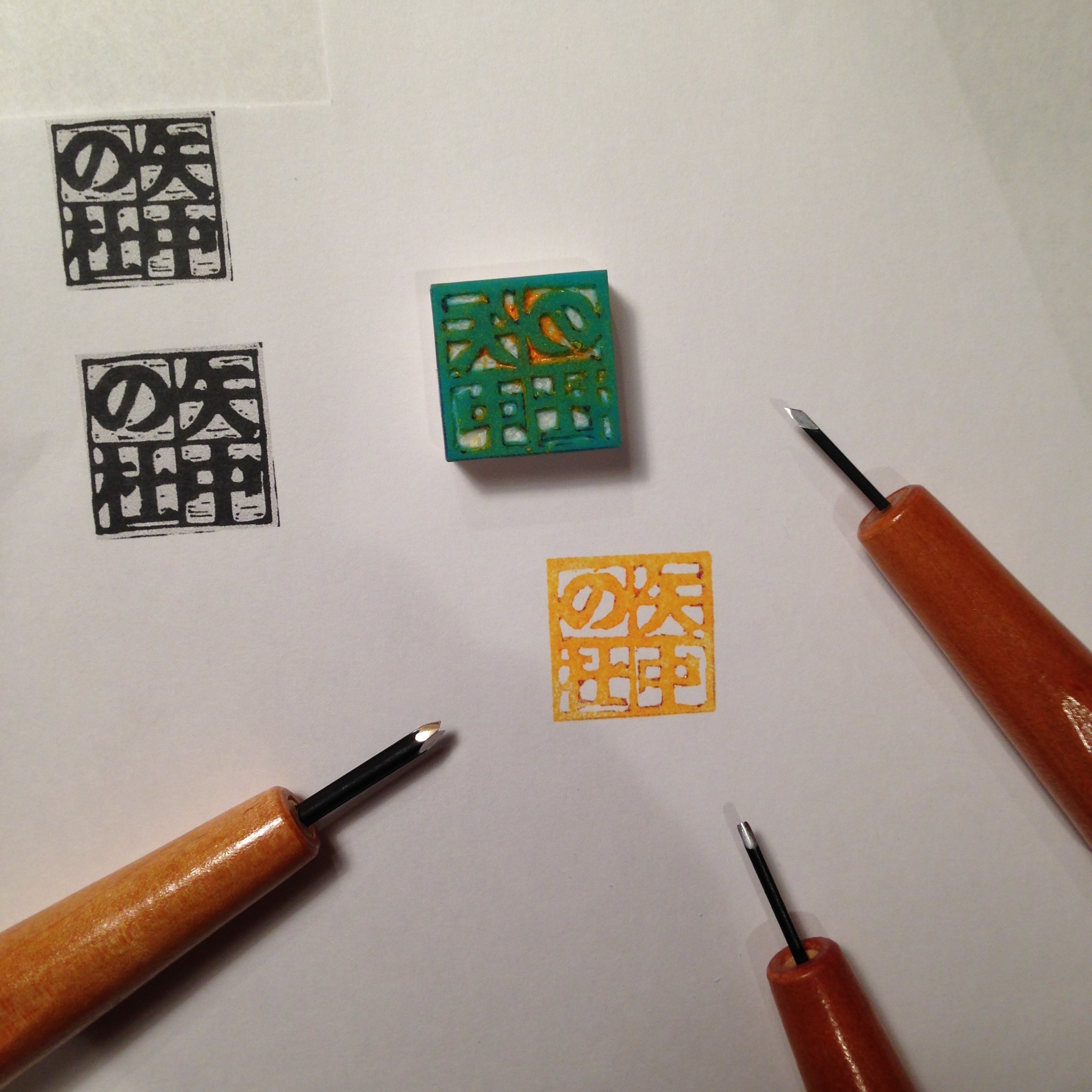 旧矢中邸本館をイメージしたカードに、手作りのオリジナル判子を。