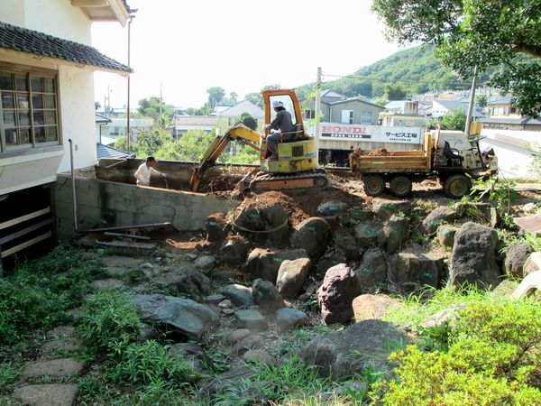 そこで同事業の援助を受けて、残された基礎を取り除き擁壁の内側から補強する大工事に!