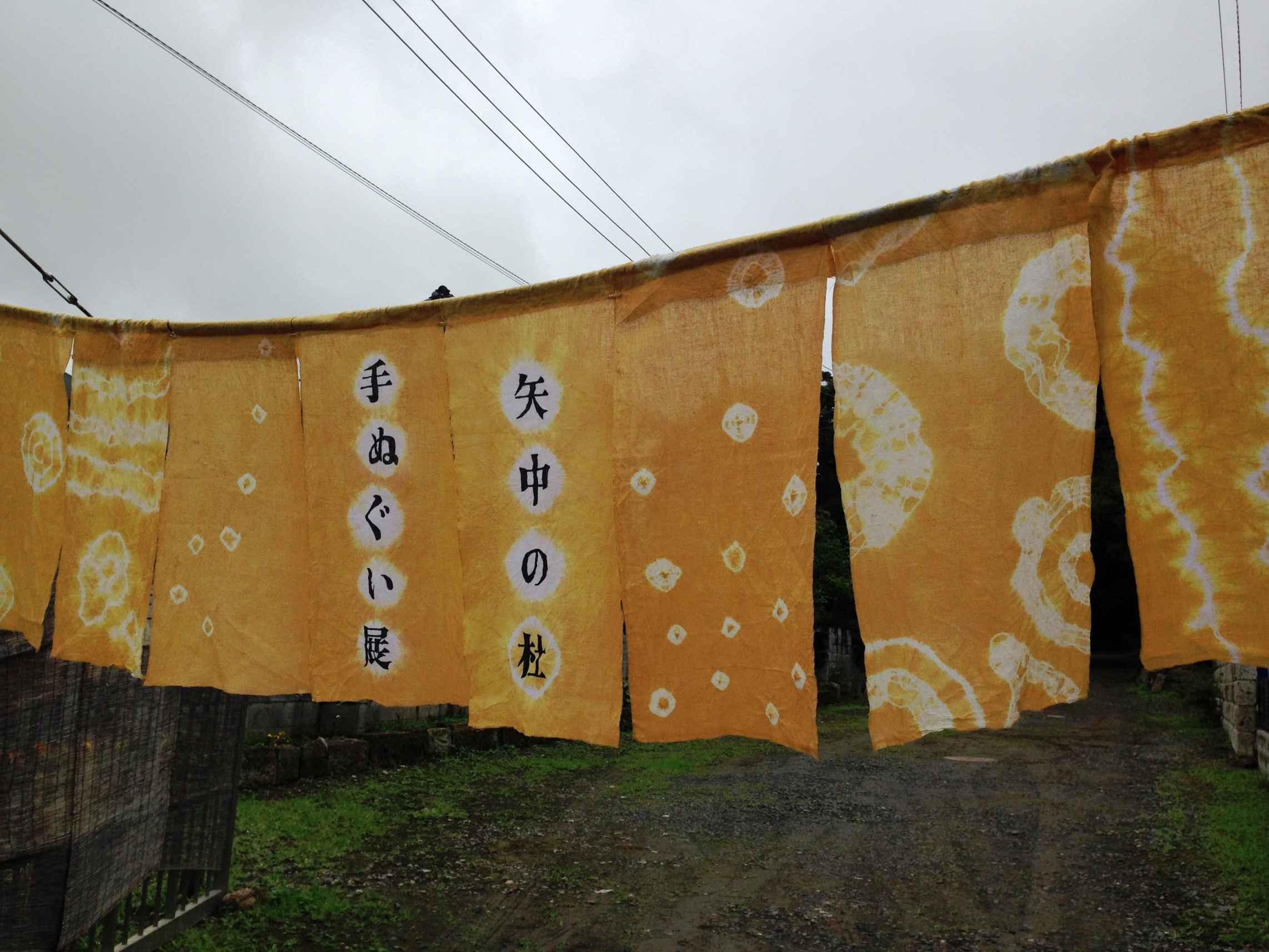 メンバー自身で染めた手ぬぐいは、表の案内のれんとなり、皆様をお迎えします。