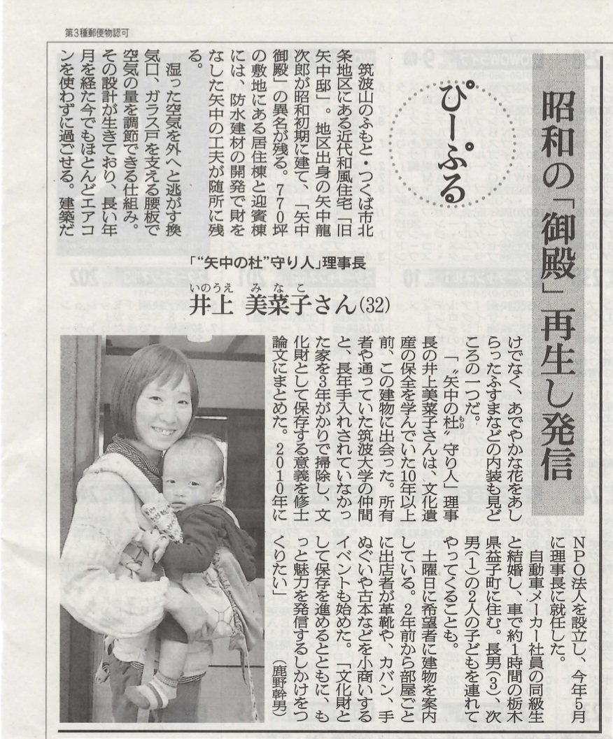 朝日新聞(10月25日茨城版)の「ぴーぷる」に”矢中の杜”の守り人理事長が紹介されました!